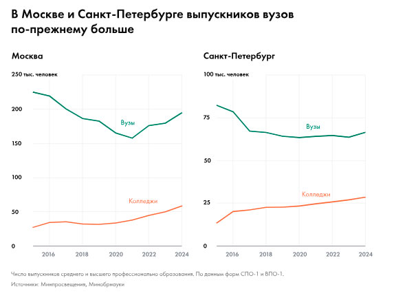 вузы. А в 2023-м выпускников колледжей впервые за 15 лет оказалось