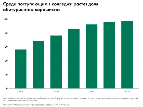 в колледжах при этом становится лучше. В 2023 году из колледжей впервые за 15 лет выпустилось больше