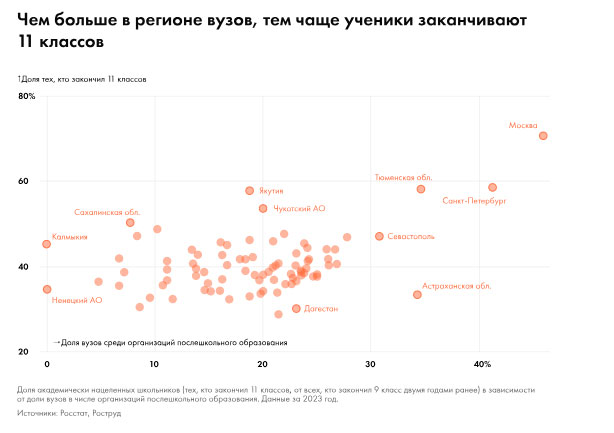 В регионах, где их мало, выпускники чаще выбирают СПО. Это же объясняет