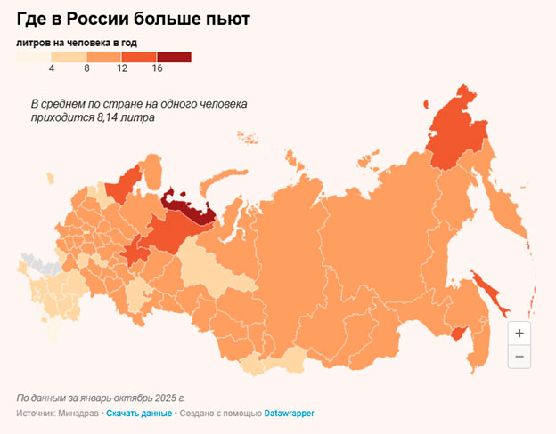 спиртного. В январе - октябре 2025 г. там пили 15 л в годовом исчислении,