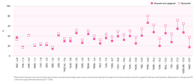 6-9 лет в разбивке по уровню образования родителей (низкий