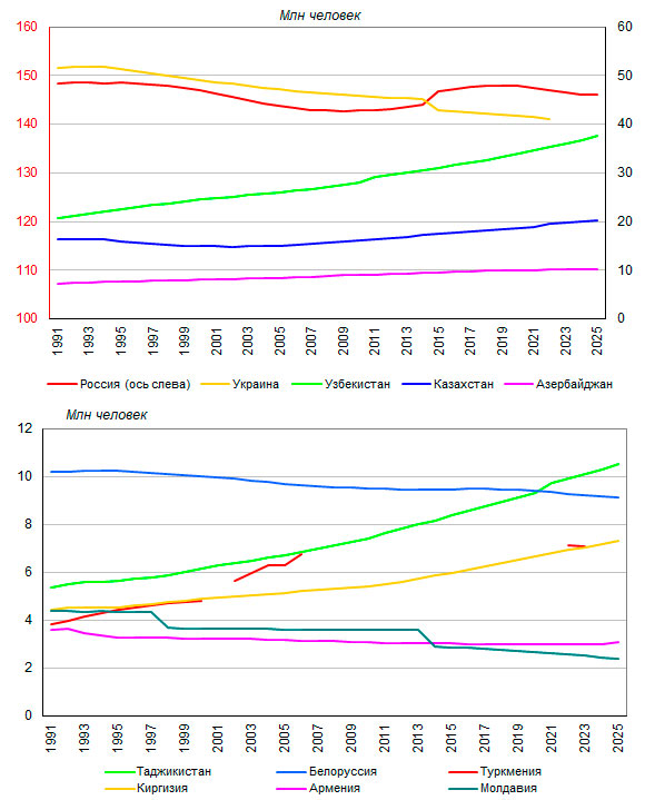 Население стран СНГ, 2025 год (часть 1) // Демоскоп Weekly. 2025.