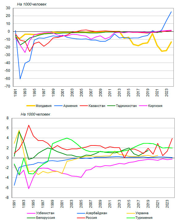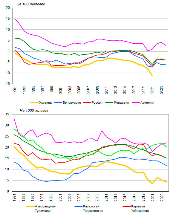 всего периода 1991-2024 годов отличалась Россия, хотя его интенсивность