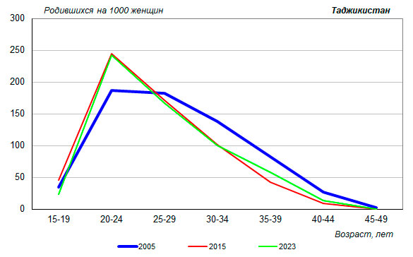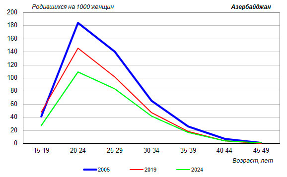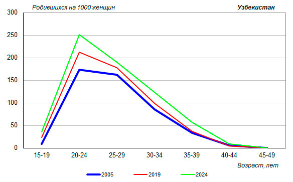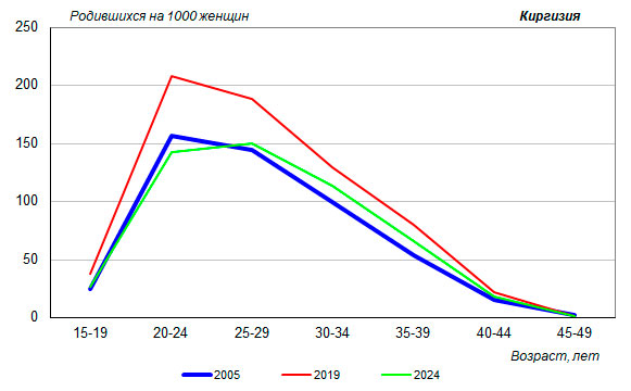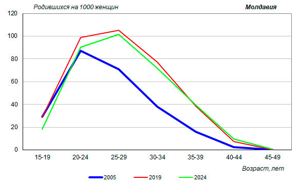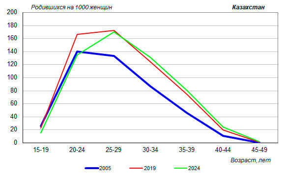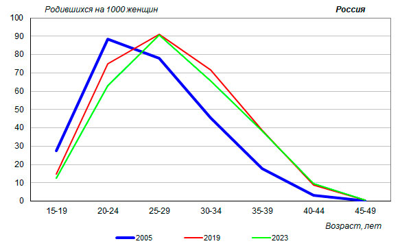 лет (87‰ в 2005 году) в группу 25-29 лет (105‰ в 2019 году). В 2024