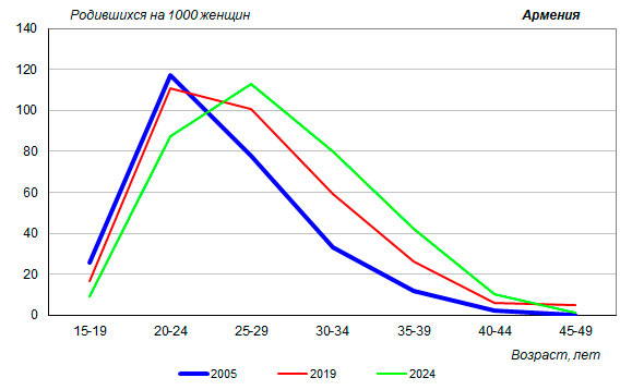 В Армении сдвиг возрастных кривых вправо также очевиден