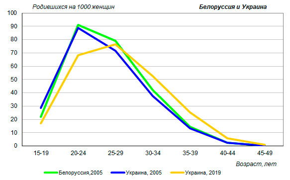 Возрастной профиль рождаемости в Белоруссии и на Украине
