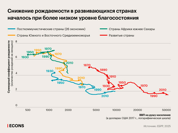 с развивающейся экономикой снижение рождаемости происходит на гораздо