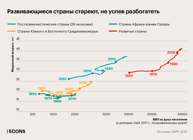 возраста с ВВП на душу населения (см. График ниже). Медианный возраст