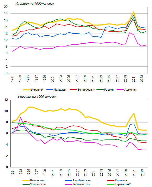 этих стран. Несколько выше общий коэффициент смертности был в Туркмении