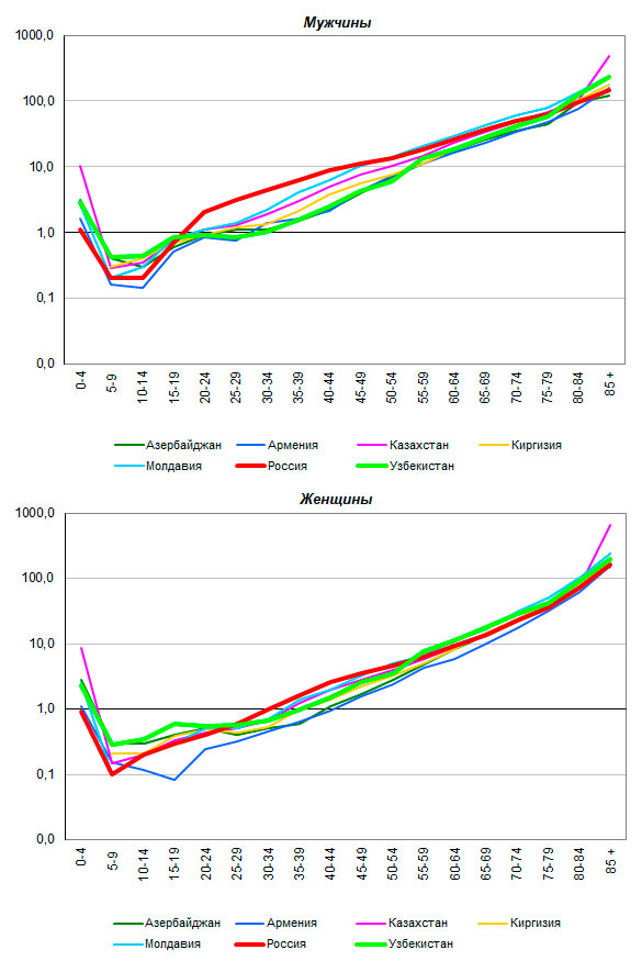 45-49 лет также выше, чем в других странах СНГ, но различия не столь
