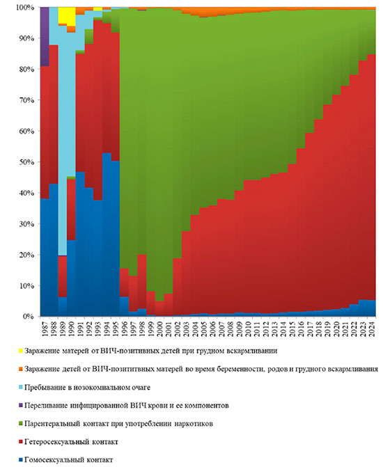 факторам риска заражения c 1987 по 2024 гг.