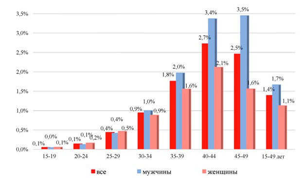 Пораженность ВИЧ-инфекцией населения Российской Федерации в возрастной