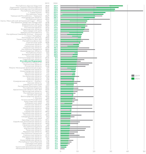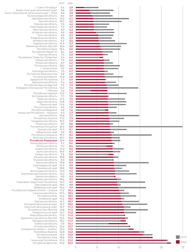 данные в разрезе субъектов Российской Федерации. Относительные показатели
