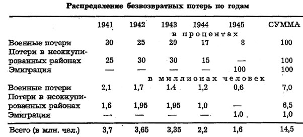 в боях с немцами, а также благодаря немецкой оккупации и угону советских