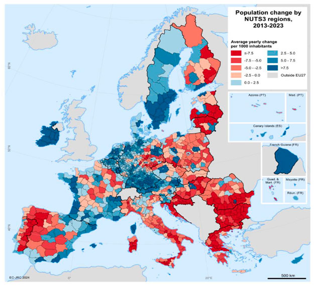 По мере сокращения населения ЕС все больше регионов