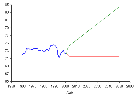 Рисунок 6.2. Ожидаемая продолжительность жизни в России в